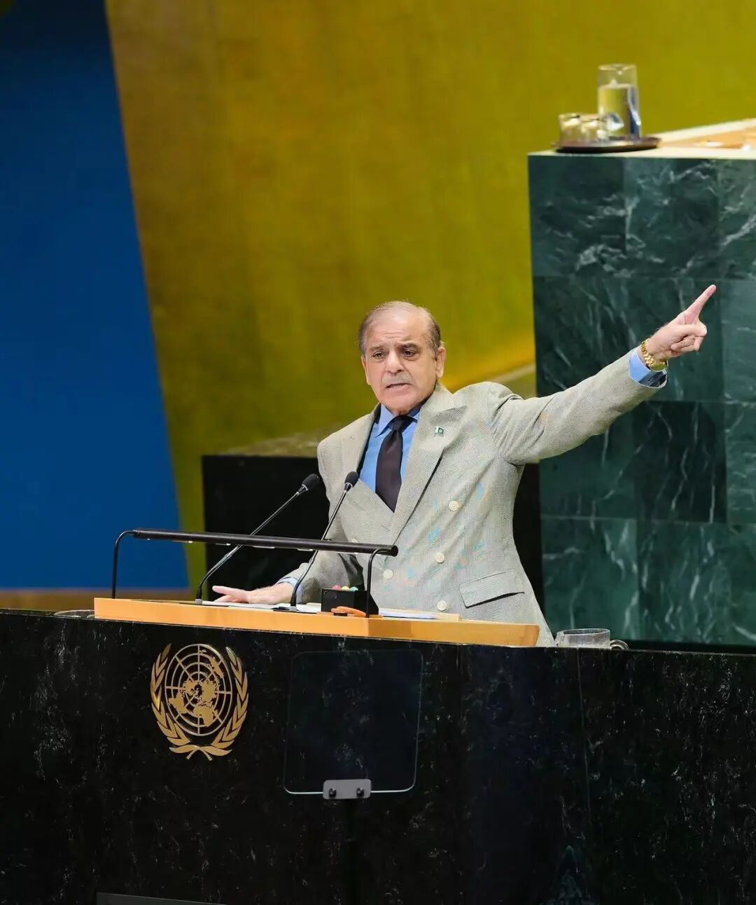 第二天,换了一身淡色西装的巴基斯坦总理夏巴兹,出现在了联合国讲坛。他告诉世界,“敌人带着傲慢态度而来,我们则让他们颜面扫地、血流满面地退却。”